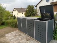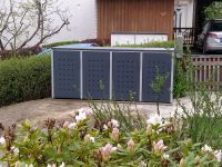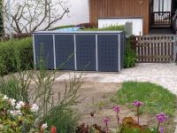 Das alte Holzgerätehaus musste erneuert werden und in diesem Zusammenhang haben auch die Mülltonnen einen neuen Standplatz bekommen. Die Restmülltonnen, die Biotonne und ein gelber Sack haben in einer Mülltonnenbox an der Hecke am Haupteingang unseres Hauses ihren Platz gefunden. Die blaue Tonne und ein gelber Sack stehen neben dem neuen Gerätehaus am Parkplatz.