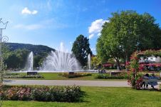 Im Rosengarten befindet sich auch Deutschlands einziger Mulimedia Brunnen. Hier erleben Sie täglich zauberhafte musikalische Wasserchoreografien sowei regelmäßige Beamer-Shows. Kommen Sie nach Bad Kissingen und genießen Sie den außergewöhnlichen Flair dieser Stadt. Haus Holzheimer bietet Ihnen preiswerte, schöne Ferienwohnungen in ruhiger Umgebung und Nähe zur Stadtmitte und KissSalis-Therme.